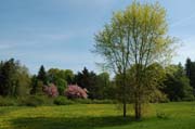 Queen-Auguste-Victoria-Park: Die Schlosswiese blüht vor der Kulisse der jungen Bäume (Bild: Regionalia)