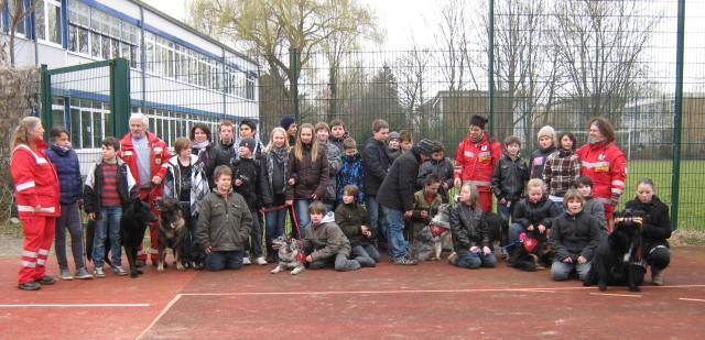 „Am 24. Februar.11 besuchte die Rettungshundestaffel Breisgau / Ortenau e.V. die Klassen 5a und 5b der Julius- Leber- Schule. Die Hundeführer kamen mit den Hunden Rocky, Sky, Luna, Jacky, Devil, Buddy und Artus. Nachdem wir uns kennen gelernt hatten, gab es Stationen zum Thema Hundeberufe, Hundepflege und Geruchsinn der Hunde. Bei einer Station durften wir uns zu zweit verstecken und die Hunde mussten uns suchen. Das war sehr lustig, weil sie dann laut bellten als sie uns gefunden hatten. Leider war ein Hund verletzt und konnte nicht mitmachen. Das war schade. Alle Schüler fanden, dass es ein sehr toller Tag war. Deswegen hat auch jeder von uns einen Euro für die Rettungshundestaffel gespendet.“