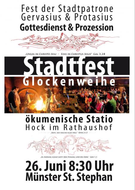 Eine Sonderausstellung im Breisacher Museum für Stadtgeschichte zeigt in eindrucksvollen Bildern die lange Tradition des Breisacher Stadtpatroziniumsfestes, das in diesem Jahr am Sonntag, den 26. Juni 2011, gefeiert wird. Neben der Eucharistiefeier im Münster St. Stephan und der feierlichen Prozession zum Marktplatz, bei der der Silberschrein mit den Reliquien der Stadtpatrone Gervasius und Protasius sowie ein ökumenischer Freiluftgottesdienst im Mittelpunkt stehen, erwartet die christliche und die weltliche Gemeinde Breisachs noch ein besonderer Höhepunkt. Die am 03. Juni 2011 in Karlsruhe gegossenen neuen Glocken des Breisacher Münsters werden geweiht und gesalbt, bevor sie in die luftigen Höhen des Südturmes entschweben.