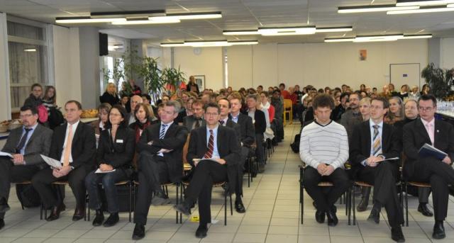 Volle Aula, tolle Schule! Gäste des Neujahrsempfangs 2011 lauschen aufmerksam wie in der Schulzeit