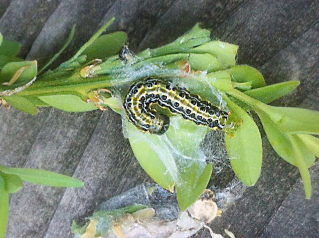 Buchsbaum-Killer Nimmersatt bei der Arbeit:: Die Raupe des Buchsbaumzünslers