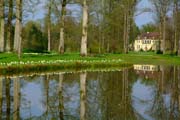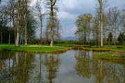 Gartenkunst im Queen-Auguste-Victoria-Park: Die Insel im Weiher und das Schloss im Spiegel des Wassers (Bild: Regionalia)