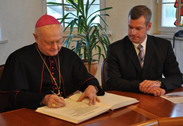 Eintrag ins Goldene Buch: Erzbischof Dr. Robert Zollitsch und Breisachs BM Oliver Rein (Bild: J. W. Steckmeister)