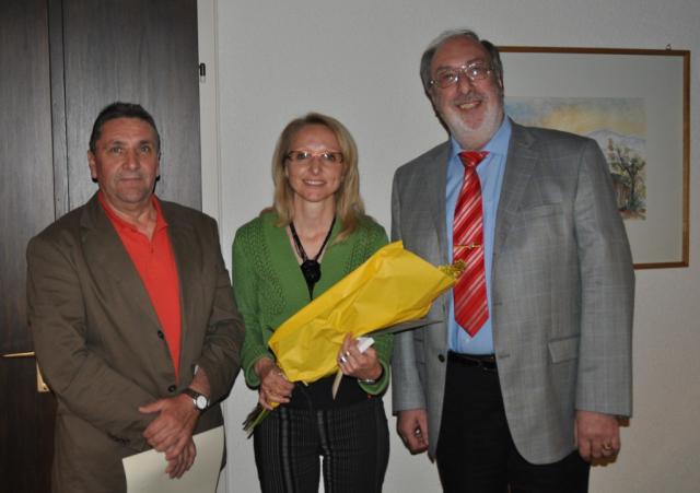 Blutspenderin ausgezeichnet: Bernhard Müller, Spenderin Angelika Gippert, Wendelin Hintereck (v.l.n.r.) (Bild: J. W. Steckmeister)