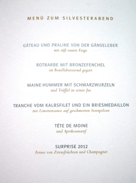 Zelebration von Weltklasse: Deutschlands Silvestermenüs für die Crème de la Crème.  11938  03.01.2017