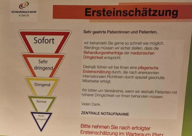 Einstufung der Notfälle am Schwarzwald-Baar-Klinikum Villingen-Schwenningen