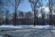 Zwei Spuren im Schnee führen durch den Queen-Auguste-Victoria-Park zum Schloss (Bild: Regionalia)