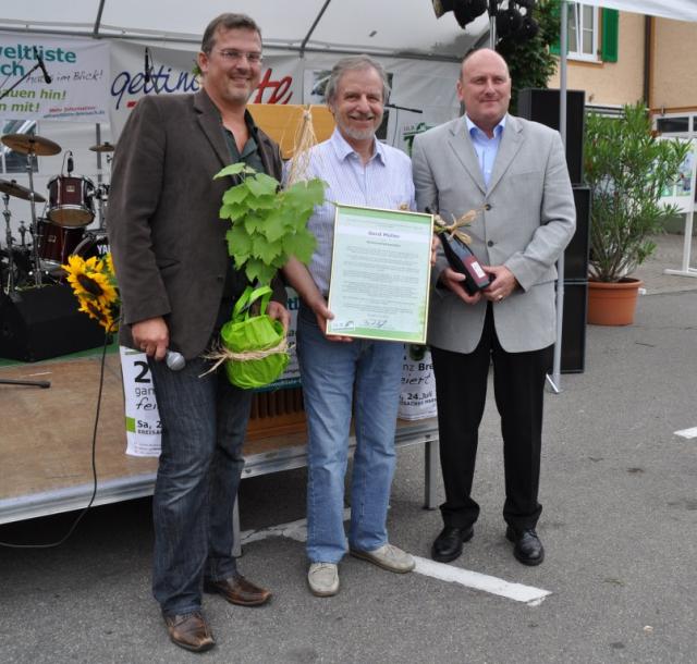 Dass die ULB bereits im Stadtarchiv zu finden sei, scherzte Rein, beweise doch bereits eine gewisse Nachhaltigkeit. Er betonte das gute miteinander der Parteien im Gemeinderat und lobte die ULB für „manchen guten Anstoß“. Aber auch Reibung, die es durchaus mit den ULBlern gäbe, sei ausschlaggebend für die besten Lösungen für die Stadt. Es sei alle Ehren wert, wenn Menschen sich für ihre Stadt einsetzten, betonte Rein und zählte einige Erfolge der ULB- Arbeit der vergangenen Jahre auf. Lediglich die seit den Neunzigern schwelende Diskussion um den autofreien Marktplatz habe für die Partei noch nicht zum Erfolg geführt. „Aber heute ist der Marktplatz für Sie autofrei“, beendete Rein seine Glückwunschrede, „wenn Sie das glücklich macht.“ Die grüne Bundestagsabgeordnete Kerstin Andreae umriss in ihrer Rede die Höhepunkte des Gründungsjahres 1989, den Beginn der politischen Wende im Osten, das Wachsen der Umweltbewegung aber auch unpolitische Neuerungen wie die erste „Loveparade“ in Berlin. Revolutionäre Entwicklungen, die sich oft in 20- Jahres- Zyklen ereigneten, so Andrea mit Blick auf die Europaabstimmung in Breisach vor drei Mal 20 Jahren oder die Protestbewegung der siebziger Jahre, zwanzig Jahre vor der Gründung der ULB. Vielleicht, so Andreae im Hinblick auf die Erfolgsgeschichte der Umweltliste, stellt die ULB ja auch bald einen Bürgermeister. „In 20 Jahren ist´ s mir wurscht“, konterte „Noch- Bürgermeister“ Oliver Rein schlagfertig aus dem Publikum. Abschließend warb auch Andreae nochmals für einen autofreien Marktplatz. Man solle die Stadt mit Menschen füllen nicht mit Autos, so die Grünenpolitikerin. Im Anschluss an Reden und musikalisches Intermezzo wurde Gerd Müller, dem ULB- Urgestein und ehrenamtlichen Bibliothekar des „Blauen Hauses“ vom ersten Vorsitzenden Dr. Andreas Hoffmann und von ULB- Fraktionschef Jürgen Langer in Form einer Urkunde die Ehrenmitgliedschaft in der Partei verliehen. Müller bedankte sich mit einer „Kleinen Parteigeschichte“, die er mit Hilfe des bereits erwähnten Stadtarchivs für die Gäste auf dem Marktplatz und seine Parteifreunde/Innen vorbereitet hatte. Bis immerhin 22 Uhr durfte noch und wurde auf dem viel zitierten Marktplatz der nahezu runde Geburtstag gefeiert.
