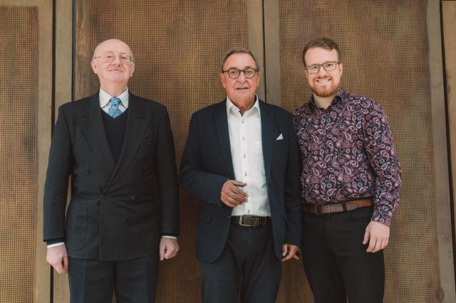 Sparkassendirektor Horst Kary mit In­ter­vie­w­er Werner Semmler und Fotograf Fionn Groß.