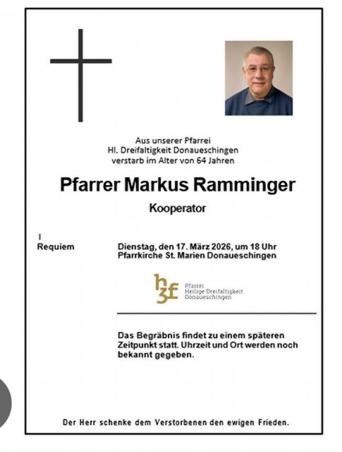 Donaueschingens Pfarrer Markus Ramminger am Freitag, den 13.3.2026 überraschend verstorben.  18748  15.03.2026