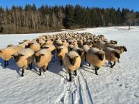 Die Schwarzkopf-Schafherde von Oliver Schwab auf dem Heimweg (Bild: Oliver Schwab)