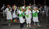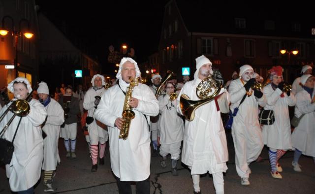 Auf dem Sammelplatz vor dem Narrenherrschaftssitz im Breisacher Rathaus hatten sich neben buntgefleckten Gauklern und immergrünen Zunfträten allerhand weißgewandete Untertanen versammelt, um zu den Klängen des Breisacher Narrenmarsches auf verschlungenen Pfaden zum Marktplatz zu wandeln. Am Gutgesellentor wurden die Umzugsteilnehmer musikalisch von den „Bajakl Schnäpfen“ in Empfang genommen. Mit neuer musikalischer Energie ging es dann bis auf den Marktplatz, wo auf den bereits für die Gauklertage errichteten Tribünen die Musiker/Innen der Stadtmusik, der „Schädelfätzer“ und der „Bajakl Schnäpfen“ sich selbst und den Umstehenden kräftig einheizten. Anschließend verlief sich der Umzug in ungeordneter Formation in den Breisacher Gaststätten, um, trotz der Schlafanzüge und Nachtmützen, dem Bett möglichst lange fern zu bleiben.