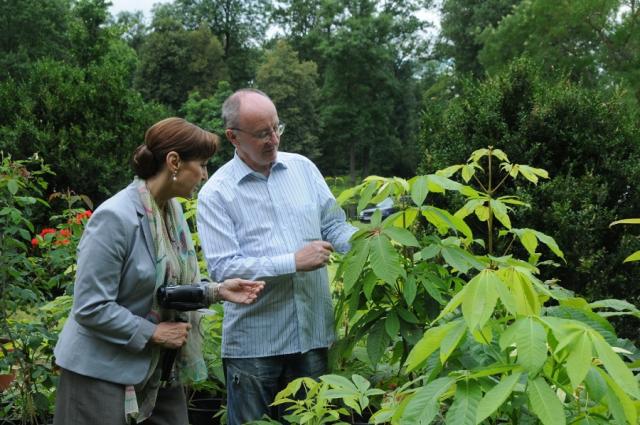 Geruchs-Proben: Schauspielerin Christine Kaufmann riecht mit Parkschöpfer Werner Semmler an seinen Duft-Kräutern (Bild: Achim Keller)