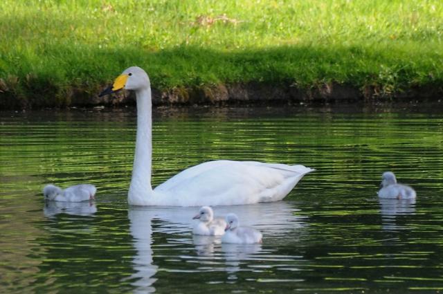 Singschwan-Orchester: Vier junge Singschwäne in Umkirchs Queen-Auguste-Victoria-Park!  6354  18.05.2012