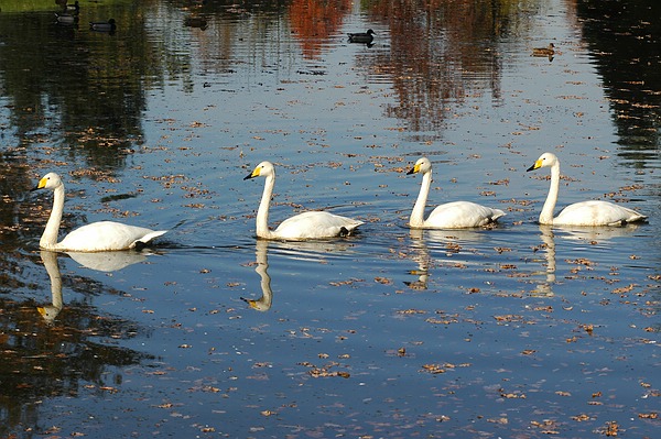 Für Fotograf sind sie hintereinander im Spalier geschwommen: die Sing-Schwäne des Queen-Auguste-Victoria-Parks