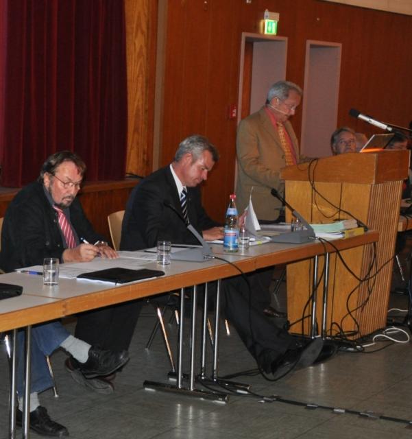 Lothar Neuman berichtet. BM Oliver Rein und BI- Mitglied Karl- Anton Hanagarth hören zu.