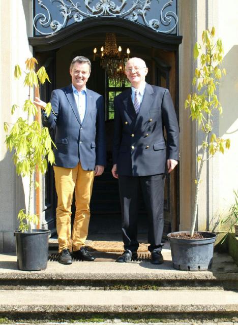 Mit diesem Einbürgerungs-Angebot hatte der Bürgermeister von Bad Krozingen keinerlei Problem: Der Umkircher Parkschöpfer Werner Semmler bot Volker Kieber an, ihm für den Kurpark und den Stadtpark je ein Exemplar eines der schönsten Blüten-Bäume der Welt zu schenken: Eine Aesculus indica. Semmler hatte den seltenen Baum aus dem Himalaya vor vielen Jahren erfolgreich im Queen-Auguste-Victoria-Park „eingebürgert“. Es ist ihm gelungen, daraus Nachwuchs zu ziehen. Der Pracht-Baum ist von der „Royal Horticultural Society“, der ehrwürdigen königlich-britischen Institution zur Förderung der Gartenkunst, als besonders schöner Baum ausgezeichnet worden und überzeugt mit einer traumhaften Blüte. Damit sich auch andere Menschen an diesem blühenden Wunder der Vielfalt der Schöpfung erfreuen können, bot der Parkschöpfer ausgewählten Bürgermeistern mit einem Faible für schönen Parks und Gärten an, ihnen ein Exemplar zu schenken. Bürgermeister Volker Kieber war von der Idee, in seiner prosperierenden Kurstadt und seinem Kurpark die Vielfalt und Schönheit der Natur zu zeigen, angetan. Er nahm das Angebot an und kam persönlich in Semmlers Queen-Auguste-Victoria-Park nach Umkirch, um die beiden jungen Bäumchen in Empfang zu nehmen. Auch Roland Mack, der Chef des Europa-Parks, war von der Idee, den schönen Baum auf seine Bühne zu holen begeistert und ließ das Baum-Geschenk an einen herausragenden Platz, direkt vor sein Schloss Bathasar, pflanzen. Und so können die Menschen künftiger Generationen nicht nur das Gewöhnliche, das Alltägliche und das Massenhafte sehen, sondern sich über das Besondere freuen: Alljährlich ein Hauch vom Himalaya in Baden - mit der eingewanderten und wundervoll blühenden Aesculus indica.