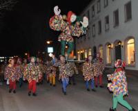 Auf dem Sammelplatz vor dem Narrenherrschaftssitz im Breisacher Rathaus hatten sich neben buntgefleckten Gauklern und immergrünen Zunfträten allerhand weißgewandete Untertanen versammelt, um zu den Klängen des Breisacher Narrenmarsches auf verschlungenen Pfaden zum Marktplatz zu wandeln. Am Gutgesellentor wurden die Umzugsteilnehmer musikalisch von den „Bajakl Schnäpfen“ in Empfang genommen. Mit neuer musikalischer Energie ging es dann bis auf den Marktplatz, wo auf den bereits für die Gauklertage errichteten Tribünen die Musiker/Innen der Stadtmusik, der „Schädelfätzer“ und der „Bajakl Schnäpfen“ sich selbst und den Umstehenden kräftig einheizten. Anschließend verlief sich der Umzug in ungeordneter Formation in den Breisacher Gaststätten, um, trotz der Schlafanzüge und Nachtmützen, dem Bett möglichst lange fern zu bleiben.