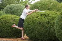 Krieg gegen Buchsbaumzünsler im Queen-Auguste-Victoria-Park: Ingo Müller spielt Henker des Buchsbaum-Mörders. (Bild: Regionalia)