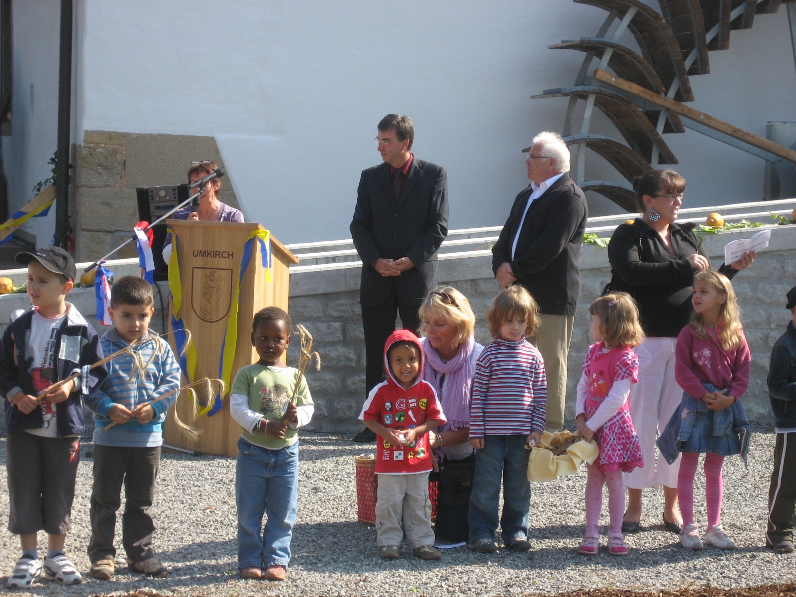 Einweihungsreden zum neuen Mühlrad in Umkirch BM Laub und Seurot