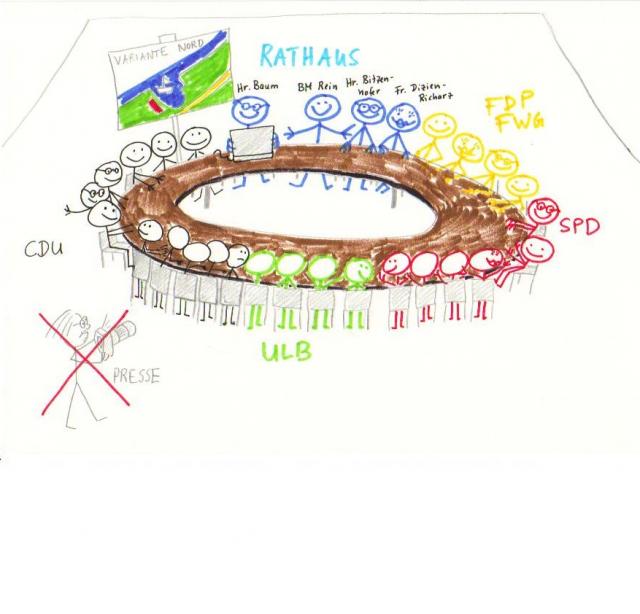 Breisacher Ratsrunde. Vom Regionalia- Gerichtszeichner portraitiert da Fotoverbot.