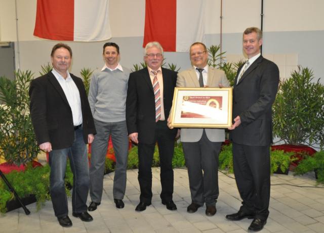 Schlüsselübergabe mit Siegmar Geisert, Uwe Thomisch, Karl- Heinz Brückner, Stefan Baum und Oliver Rein (v.l.n.r.) (Bild: J. W. Steckmeister)