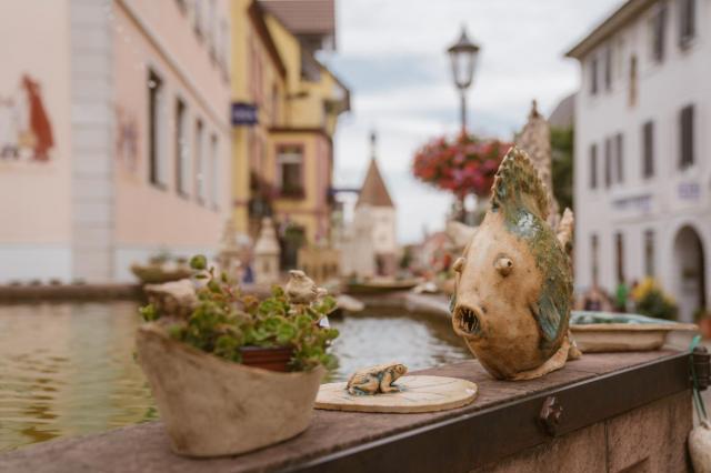 Stadtgesicht Endingen: Skulpturen am Brunnen.