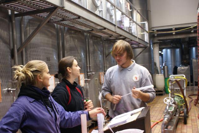 Junges Team bei der Weinanalyse v.l.n.r. - Sandra Lütje, Stefanie Fleig, Nikolas Körner (Bild: BWK)