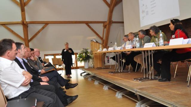 2. Interkommunaler Wirtschaftstreff: Gabriela Bernauer (Mitte) befragt die Gewerbevereinsvorsitzenden (Bild: J. W. Steckmeister)