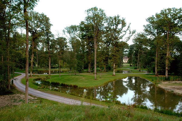 Blick durch den Baumtunnel im Queen-Auguste-Victoria-Park zum Schloss