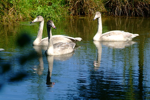 Queen-Auguste-Victoria-Park: die drei jungen Sing-Schwäne