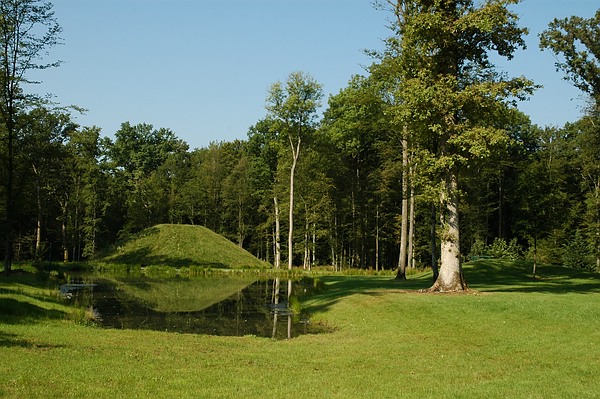 Natürlicher Erdkegel im Queen-Auguste-Victoria-Park: Er ist so arangiert, dass er sich im Wasser spiegelt.