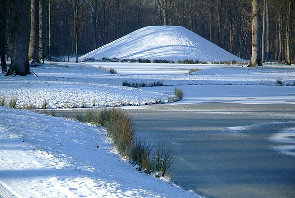 Er hat sich den weisen Wintermantel angezogen: der grüne Erdkegel im Fulwellpark