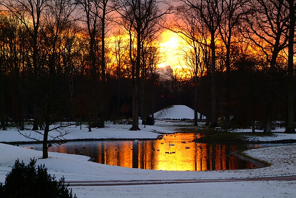 Winter und Sonnenuntergang im Queen-Auguste-Victoria-Park