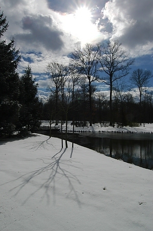 Baumschatten im Schnee des Fulwellparks