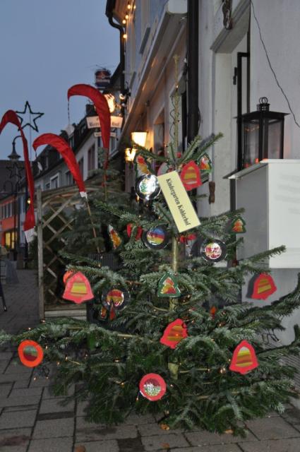 Weihnachtsbäume in der Neutorstraße: von KIGA- und Grundschulkindern dekoriert