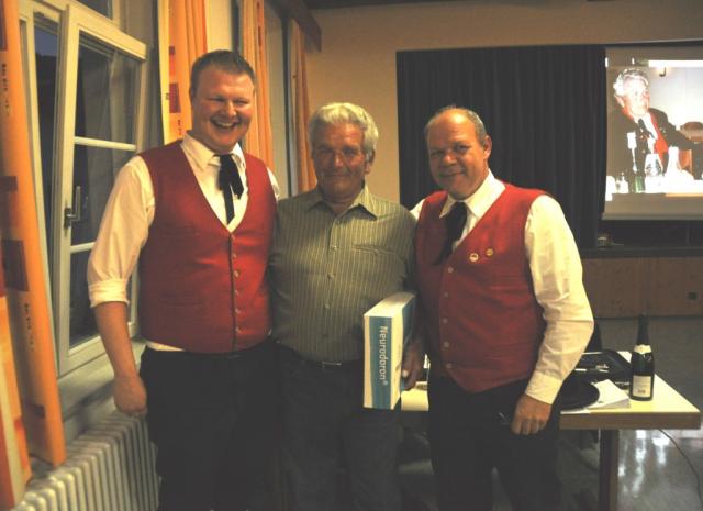 Musikalischer Ruhestand: 2. Vorsitzender Dominik Willy (links) und 1. Vorsitzender Michael Gippert veranschieden Lorenz Federer (Mitte)