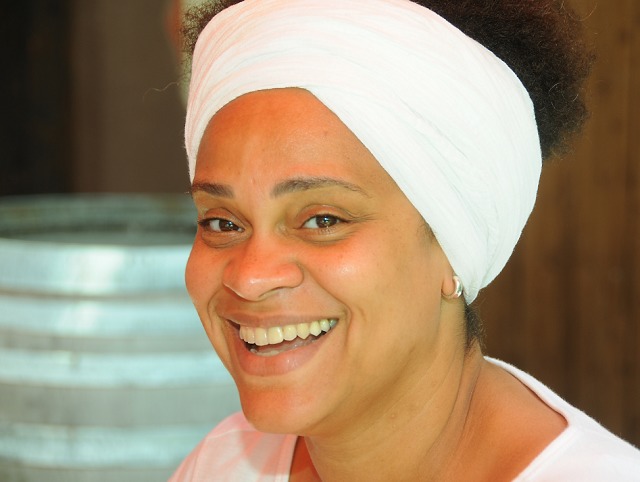 Jazz-Sängerin Cécile Verny lacht, wenn sie Köstliches in Fischers Adler genießt.