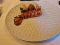 Die Cylindra-Bete aus dem elterlichen Anbau in Prestenberg war als Gel und auf Salz gebacken auf dem Teller präsent. Die Haselnuss erschien in vier Variationen: Als Panna Cotta, als piemontesische Nuss, als salziger Sponge und als gebackenes Bällchen mit Salzzitrone. „Opas Apfelmost“ (aus einer alte Streuobstwiese der Sorte Boskop) fand sich als Chutney und als Gel. Eine nur mit Butter gebundene Hummerbisque begleitete den in Nussbutter temperierten Hummer.