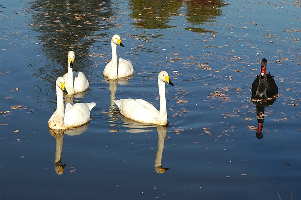 Für Fotograf sind sie hintereinander im Spalier geschwommen: die Sing-Schwäne des Queen-Auguste-Victoria-Parks