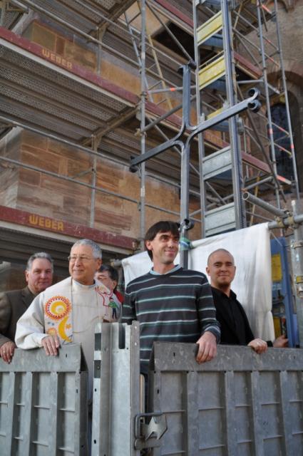 Hoch hinaus beim Pfarrfest! - Segnen und Setzen der Turmkreuze von St. Stephan  3251  04.10.2010