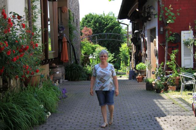 Hobby-Gärtnerin Sibylle Breisacher empfängt ihre Gäste am Hofeingang in Ihringen