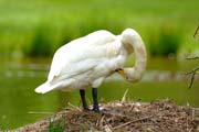 Die Sing-Schwan-Mutter auf ihrem Nest im Queen-Auguste-Victoria-Park (Bild: Regionalia)