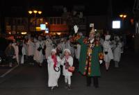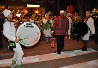 Auf dem Sammelplatz vor dem Narrenherrschaftssitz im Breisacher Rathaus hatten sich neben buntgefleckten Gauklern und immergrünen Zunfträten allerhand weißgewandete Untertanen versammelt, um zu den Klängen des Breisacher Narrenmarsches auf verschlungenen Pfaden zum Marktplatz zu wandeln. Am Gutgesellentor wurden die Umzugsteilnehmer musikalisch von den „Bajakl Schnäpfen“ in Empfang genommen. Mit neuer musikalischer Energie ging es dann bis auf den Marktplatz, wo auf den bereits für die Gauklertage errichteten Tribünen die Musiker/Innen der Stadtmusik, der „Schädelfätzer“ und der „Bajakl Schnäpfen“ sich selbst und den Umstehenden kräftig einheizten. Anschließend verlief sich der Umzug in ungeordneter Formation in den Breisacher Gaststätten, um, trotz der Schlafanzüge und Nachtmützen, dem Bett möglichst lange fern zu bleiben.