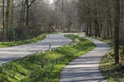 Die Landstraße vor dem Queen-Auguste-Victoria-Park weist auf das Osterglocken-Blütenwunder im Park hin (Bild: Regionalia)