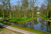 Gartenkunst im Queen-Auguste-Victoria-Park: Die Insel im Weiher und das Schloss im Spiegel des Wassers (Bild: Regionalia)