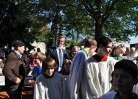 Im Rahmen des Pfarrfestes wurden am Sonntag, den 03. Oktober 2010, die Kreuze für die sanierten Türme des Breisacher St. Stephans Münsters zunächst gesegnet und dann via Baulift auf ihre angestammten Plätze transportiert. Bei strahlendem Sonnenschein hatten sich zahlreiche Gläubige und Freunde/Innen des Breisacher Wahrzeichens auf dem Münsterplatz versammelt, um dem feierlichen Augenblick beizuwohnen. Umrahmt von den Klängen der Stadtmusik Breisach segnete Münsterpfarrer Peter Klug die beiden schlichten Eisenkreuze, die für hoffentlich viele Jahrzehnte die frisch renovierten Münstertürme zieren und auf die Stadt am Rhein herabschauen werden.