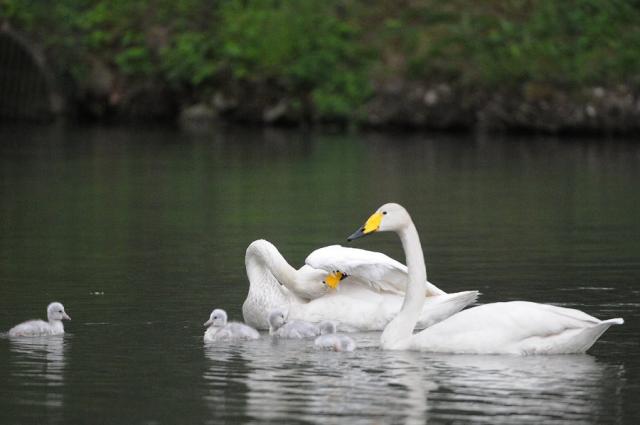 Schwanengeburt: Vier junge Singschwäne in Umkirchs Queen-Auguste-Victoria-Park (Bild: Achim Keller)