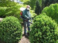 Notwehr gegen den Buchsbaum-Abfackler: Ingo Müller beim Einsatz gegen den Buchsbaumzünsler im Queen-Auguste-Victoria-Park. (Bild: Regionalia)