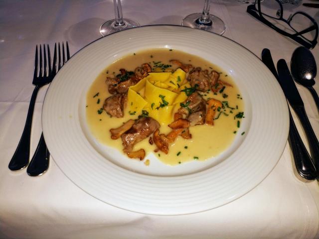 Eine seltene Köstlichkeit für Kenner: Gizzi-Ragout mit frischen Pfifferlingen und Nudeln.